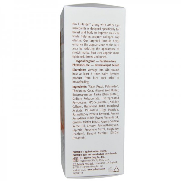 Le beurre de cacao, le beurre de karité, la vitamine E et notre Bio C-Elaste exclusif aident l'humidité et la peau de soutien autour de la zone de buste pour augmenter la tonalité et la fermeté. Bio C-Elaste est une puissante combinaison de collagène, d'élastine, de centella asiatique, d'huile d'amande douce et d'huile d'argan.