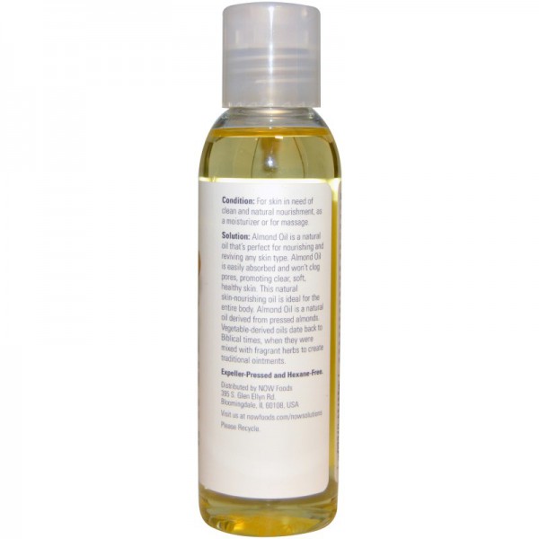 Solution: L'huile d'amande est une huile tout naturelle idéale pour nourrir et relancer tout type de peau. L'huile d'amande est facilement absorbée et ne pas obstruer les pores, en favorisant une peau claire, douce et saine. Cette huile naturelle nourrissante pour la peau est idéale pour tout le corps. L'huile d'amande est une huile naturelle issue d'amandes pressées.